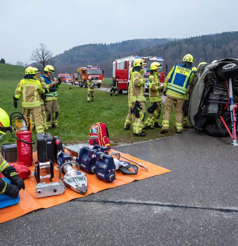Im Mittelpunkt der Übung stand die parallele Abarbeitung mehrerer Einsatzabschnitte unter schwierigen Bedingungen. Die Rettung der eingeklemmten Personen erfolgte zeitgleich in verschiedenen Bereichen: Bei einem Frontalzusammenstoß zweier PKW wurden beispielsweise die Feuerwehren Vogling und Vachendorf tätig. Sie konnten zwei Menschen aus den Fahrzeugen retten.
