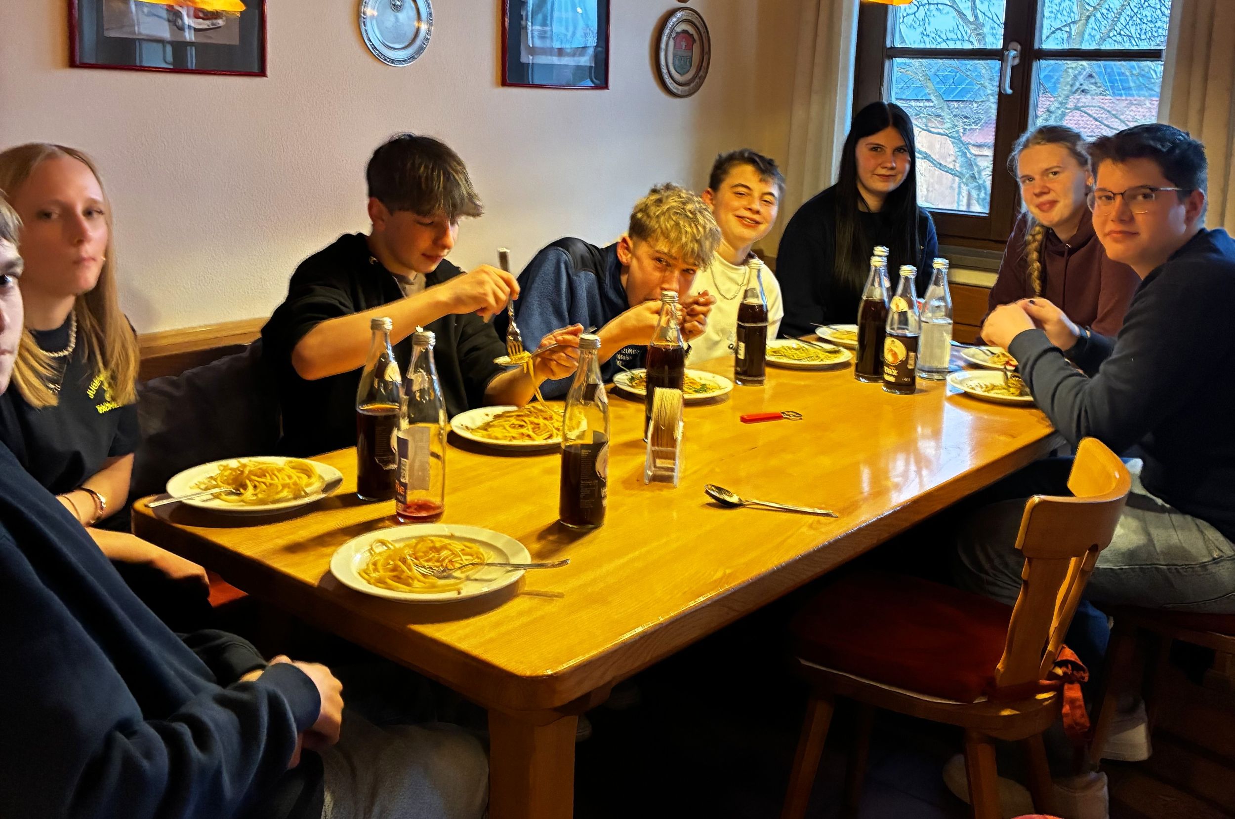 Teamarbeit war anschließend bei einem Geschicklichkeitsspiel gefragt: Gemeinsam mussten die Jugendlichen mit Seilen und einem Haken Holzklötze anheben und daraus einen Turm bauen – eine Übung, die nur durch gute Zusammenarbeit funktionierte. Nach dem Frühstück und etwas Morgensport wurde gemeinsam aufgeräumt. Ein letzter „Fehlalarm“ sorgte nochmals für Aufregung, bevor der 24-Stunden-Übungstag nach dem Mittagessen am Samstagnachmittag endete.