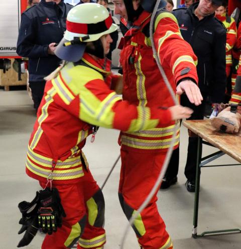 Beide Gruppen konnten die Schiedsrichter durch eine sichere, strukturierte und souveräne Arbeitsweise überzeugen und alle Aufgaben innerhalb der geforderten Sollzeit erfolgreich absolvieren. Kreisbrandmeister Hans Heinrich bestätigte den Teilnehmerinnen und Teilnehmern eine hervorragende Leistung und gratulierte beiden Gruppen zur bestandenen Leistungsprüfung. In seinem Fazit betonte er: „Solche Leistungen zeigen eindrucksvoll, wie wichtig regelmäßige Ausbildung, Teamarbeit und Engagement sind – darauf kann jede einzelne Einsatzkraft stolz sein.“