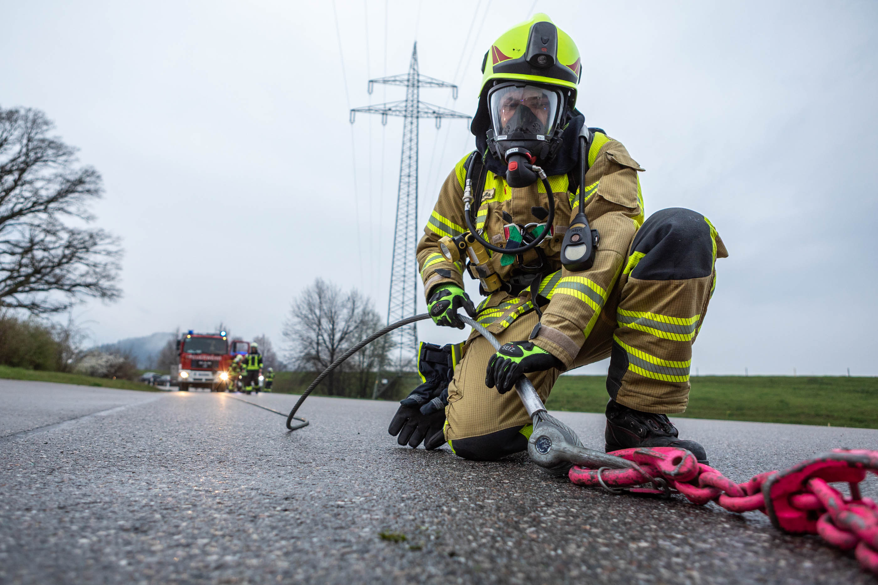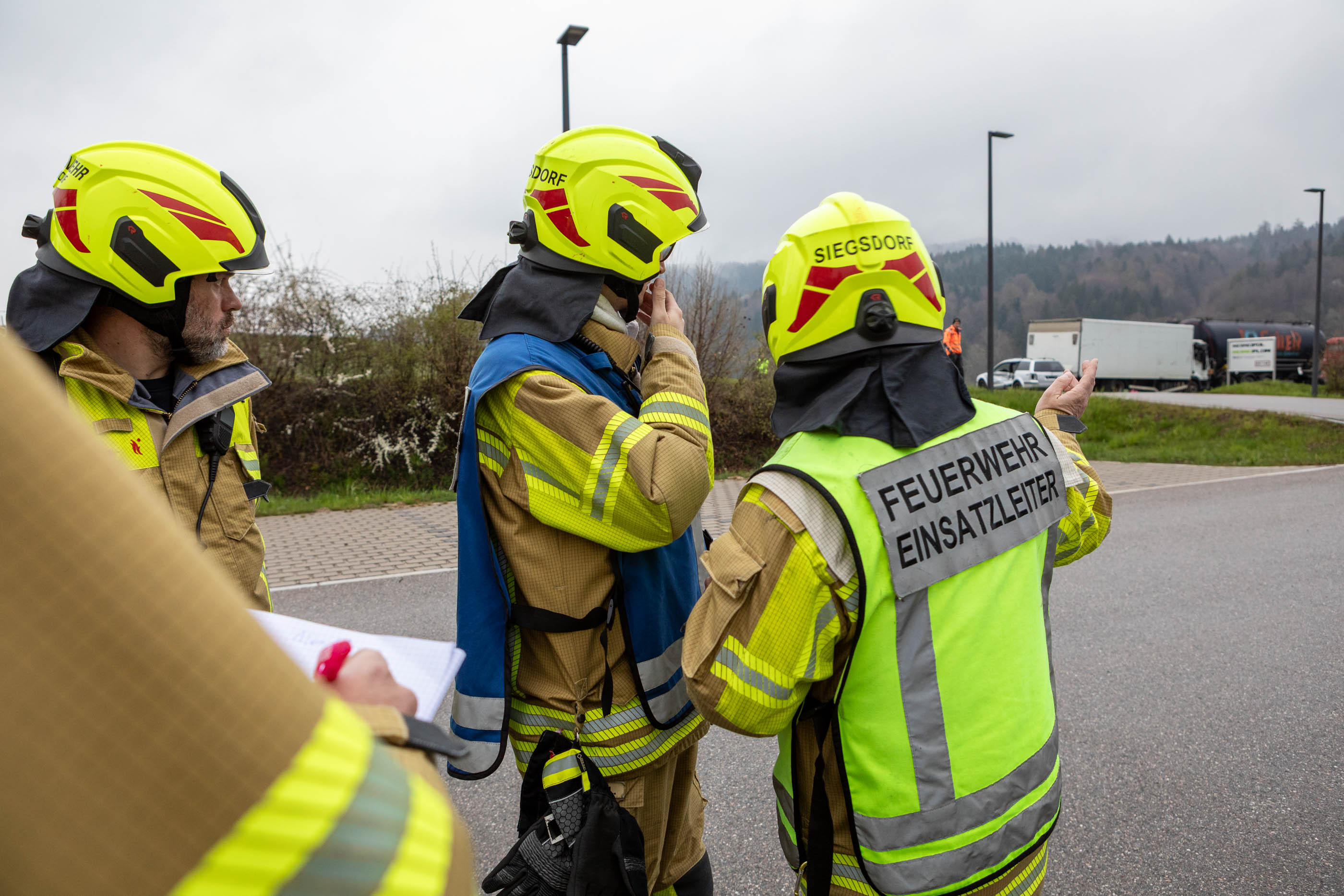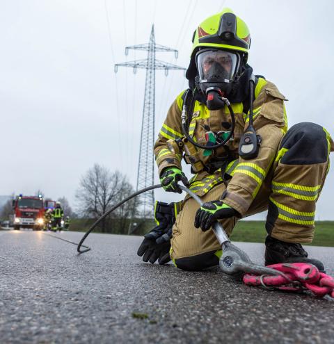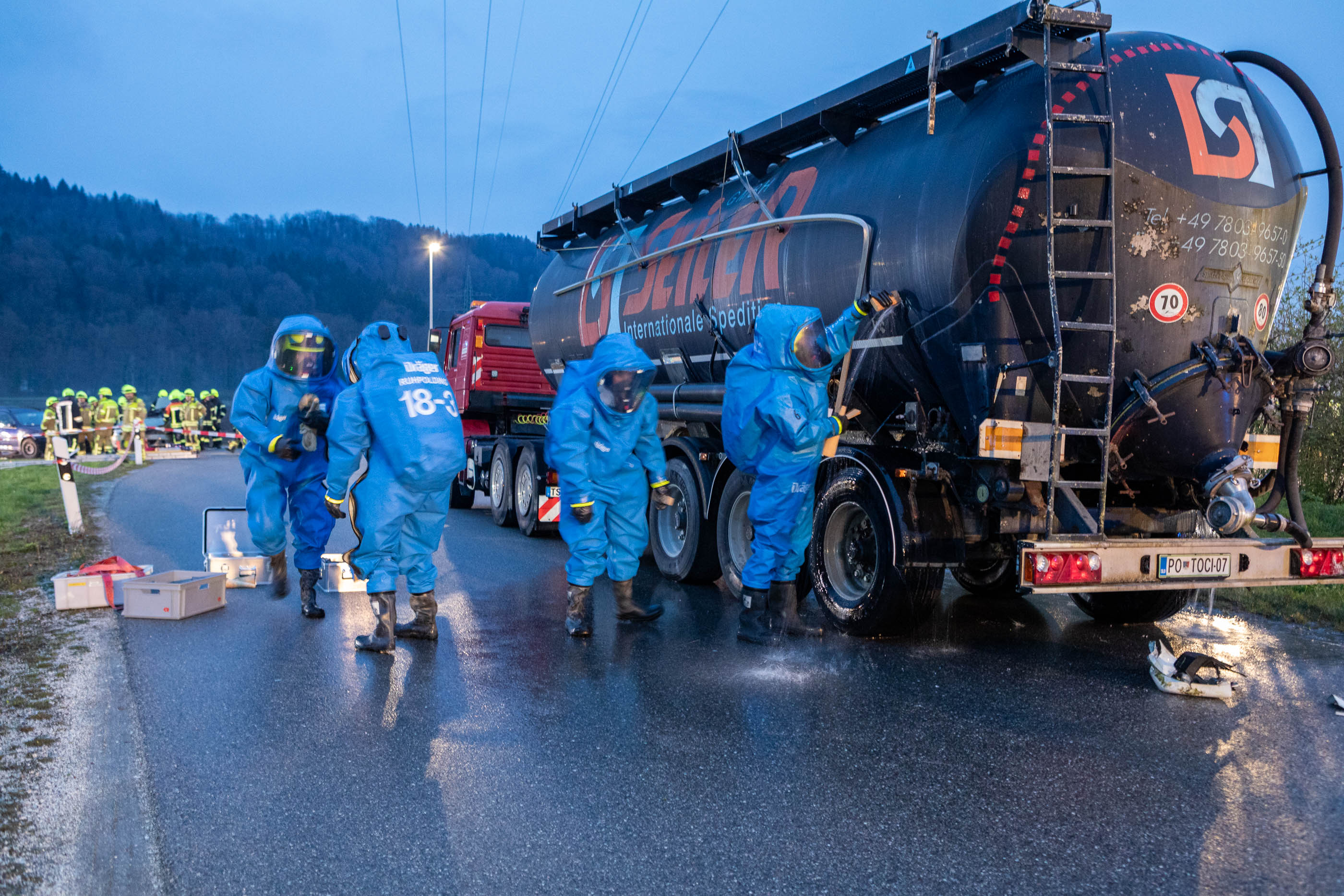 Neben den Erstmaßnahmen zum Auffangen der austretenden Flüssigkeit wurden umfangreiche Maßnahmen zur Eindämmung des Gefahrstoffaustritts erforderlich. Besonderes Augenmerk lag auf der Arbeit unter schweren Chemikalienschutzanzügen, dem Abdichten des austretenden Stoffes sowie dem Aufbau und Betrieb einer Dekontaminationsstelle. „Gefahrguteinsätze sind für die Feuerwehren häufig sehr komplexe Einsatzlagen, die neben umfangreichem taktischem Wissen auch eine material- und personalintensive Herangehensweise erfordern“, erklärt Rupert Kink.
