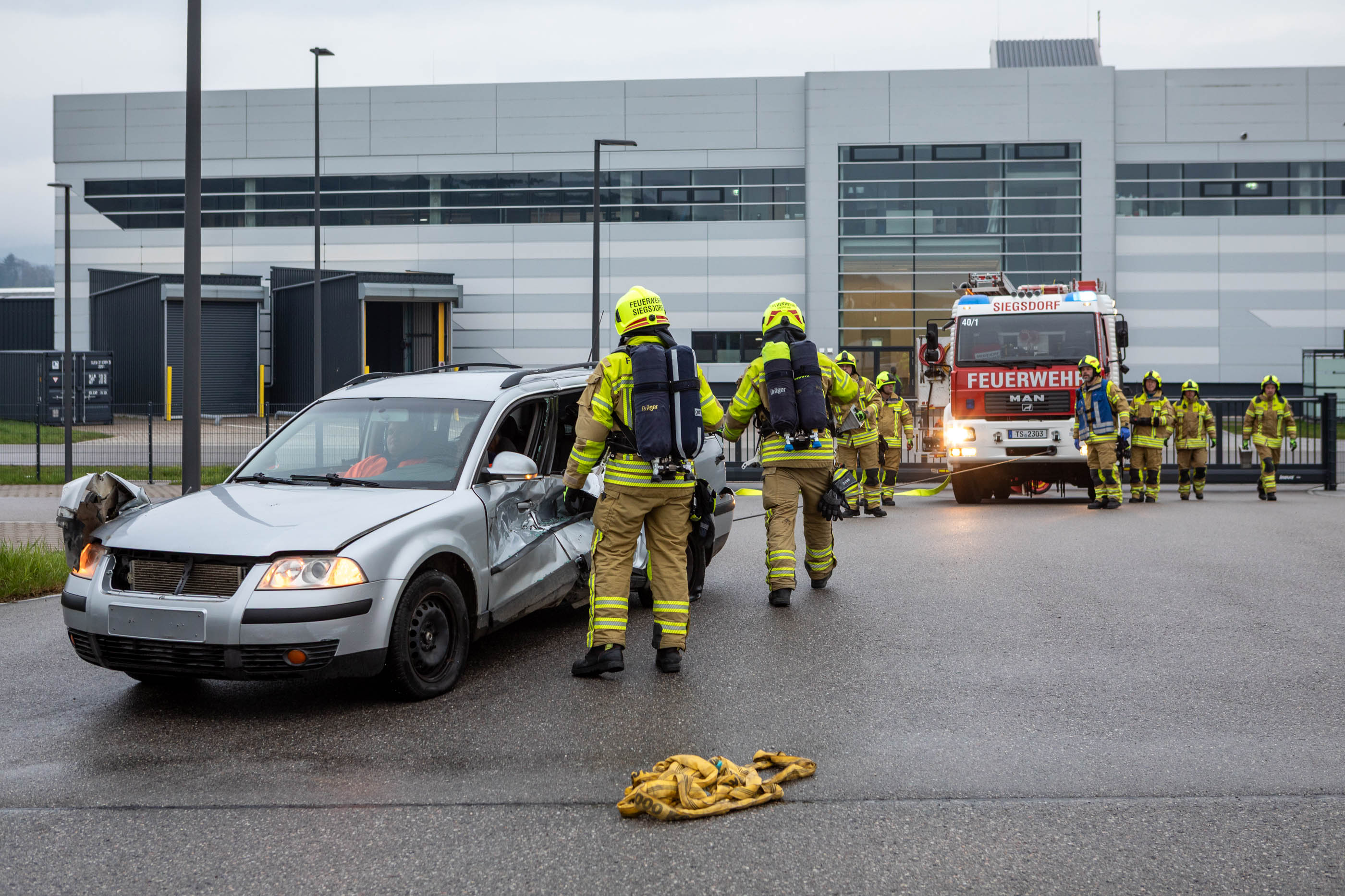 Siegsdorfs Kommandant Manfred Steiner ergänzt, „ein Dank geht auch an die Firma Erdbau Kecht, die uns mit schwerem technischem Gerät geholfen hat, die Fahrzeuge zu positionieren und die passenden Unfallschäden für die Übung herbeizuführen“.