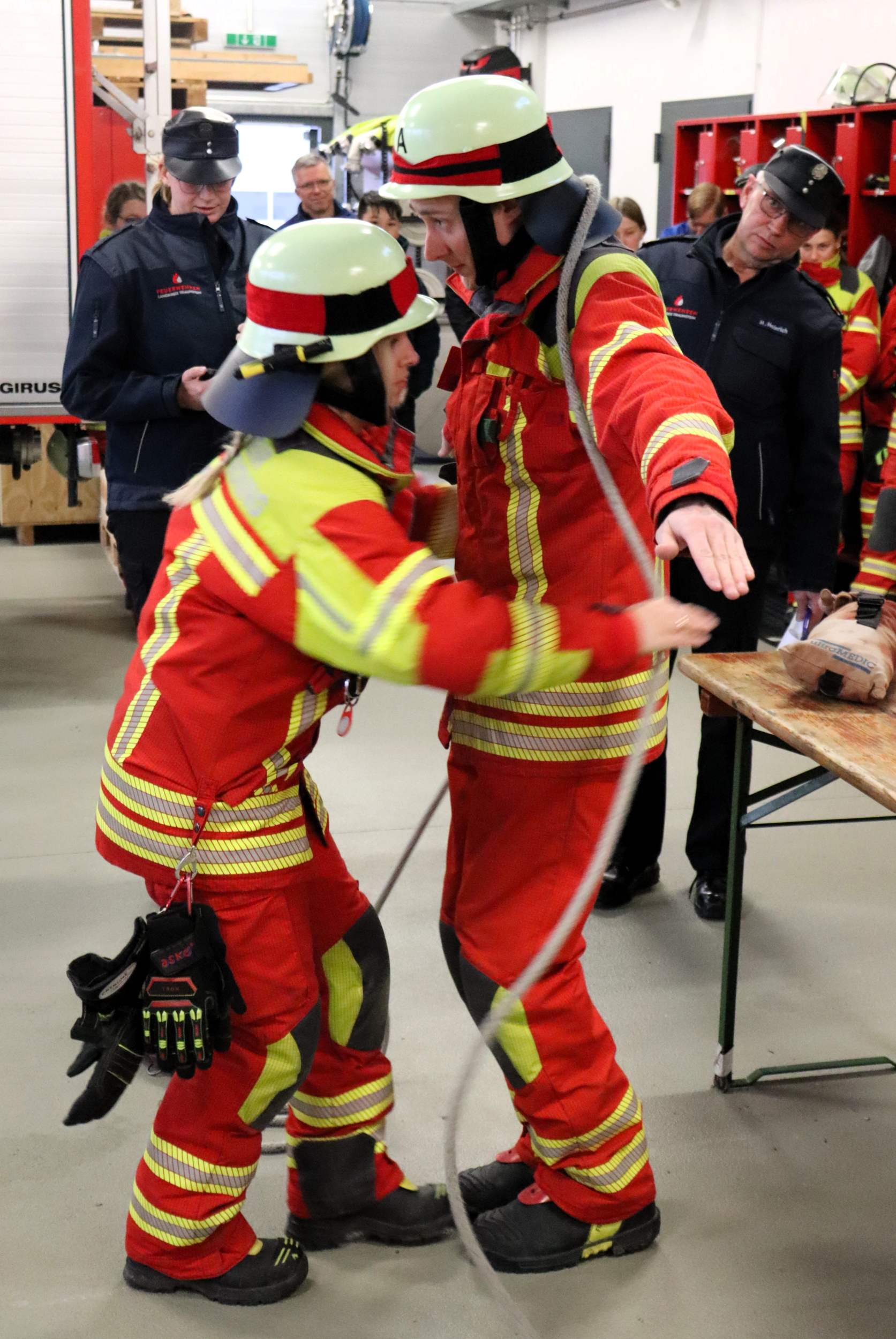 Beide Gruppen konnten die Schiedsrichter durch eine sichere, strukturierte und souveräne Arbeitsweise überzeugen und alle Aufgaben innerhalb der geforderten Sollzeit erfolgreich absolvieren. Kreisbrandmeister Hans Heinrich bestätigte den Teilnehmerinnen und Teilnehmern eine hervorragende Leistung und gratulierte beiden Gruppen zur bestandenen Leistungsprüfung. In seinem Fazit betonte er: „Solche Leistungen zeigen eindrucksvoll, wie wichtig regelmäßige Ausbildung, Teamarbeit und Engagement sind – darauf kann jede einzelne Einsatzkraft stolz sein.“